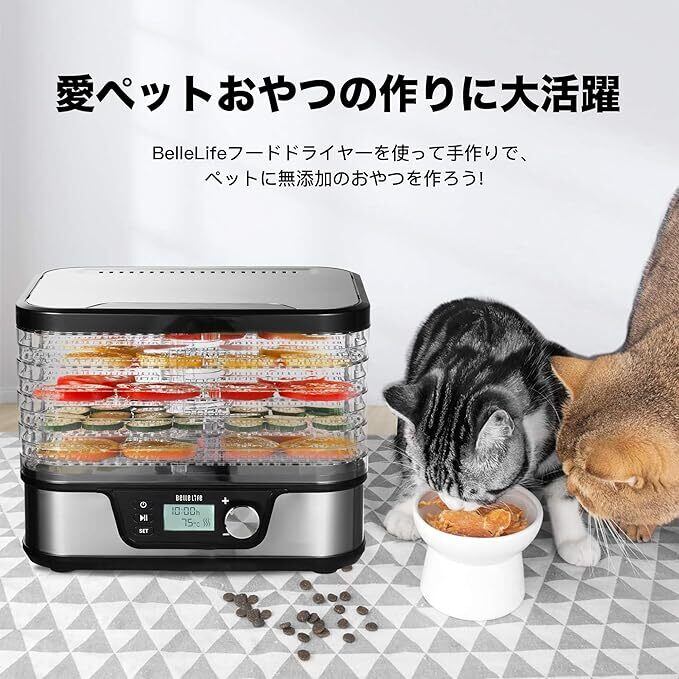 BelleLife フードドライヤー 食品乾燥機 ドライフルーツメーカー ドライフードメーカー新しいアップグレード 野菜乾燥機 電気食品脱水機 5層大容量 無添加おやつ ドライフードメーカー 【専用レシピ&専用マジックシート】 最大8段まで拡張 6層・7層・8層(トレイ購入必要)BLF-400LCD-B