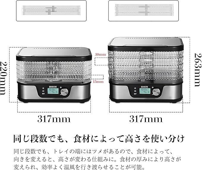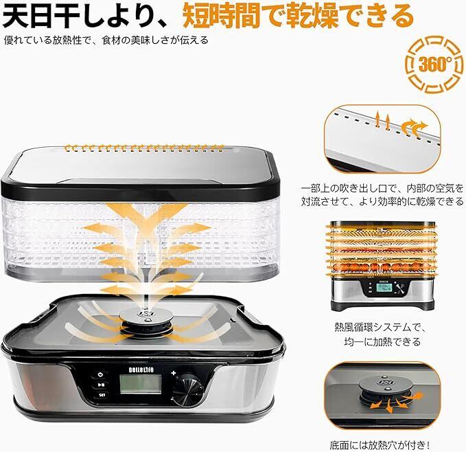 【5段トレーで一気に乾燥】トレーが5段あり、たくさんの食品を一気に乾燥させられる食品乾燥機しかも、すべてのトレイの温度が均一になるように設計されていますコンパクトで場所を取らず、必要に応じて高さを変えられる汎用性が魅力の一品食品に含まれる水分を飛ばして乾燥させる従来の方法と異なり、栄養価を保ったまま、乾燥させることが可能にトレイだけを購入したい場合は、https://www.amazon.co.jp/dp/B0CHRLH9LFにアクセスして購入できます