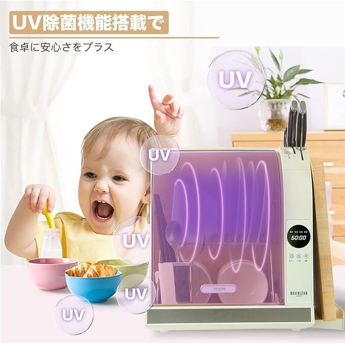 BelleLife 食器乾燥機 食器乾燥器 4人分 UV除菌 おしゃれ コンパクト 30L 高温乾燥 まな板乾燥 タイマー付 省エネ 自然対流式 抗菌 大容量 新生活 食器ドライヤー