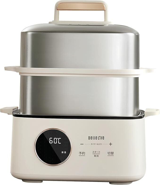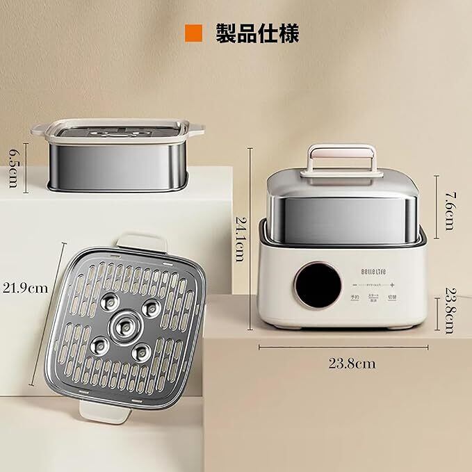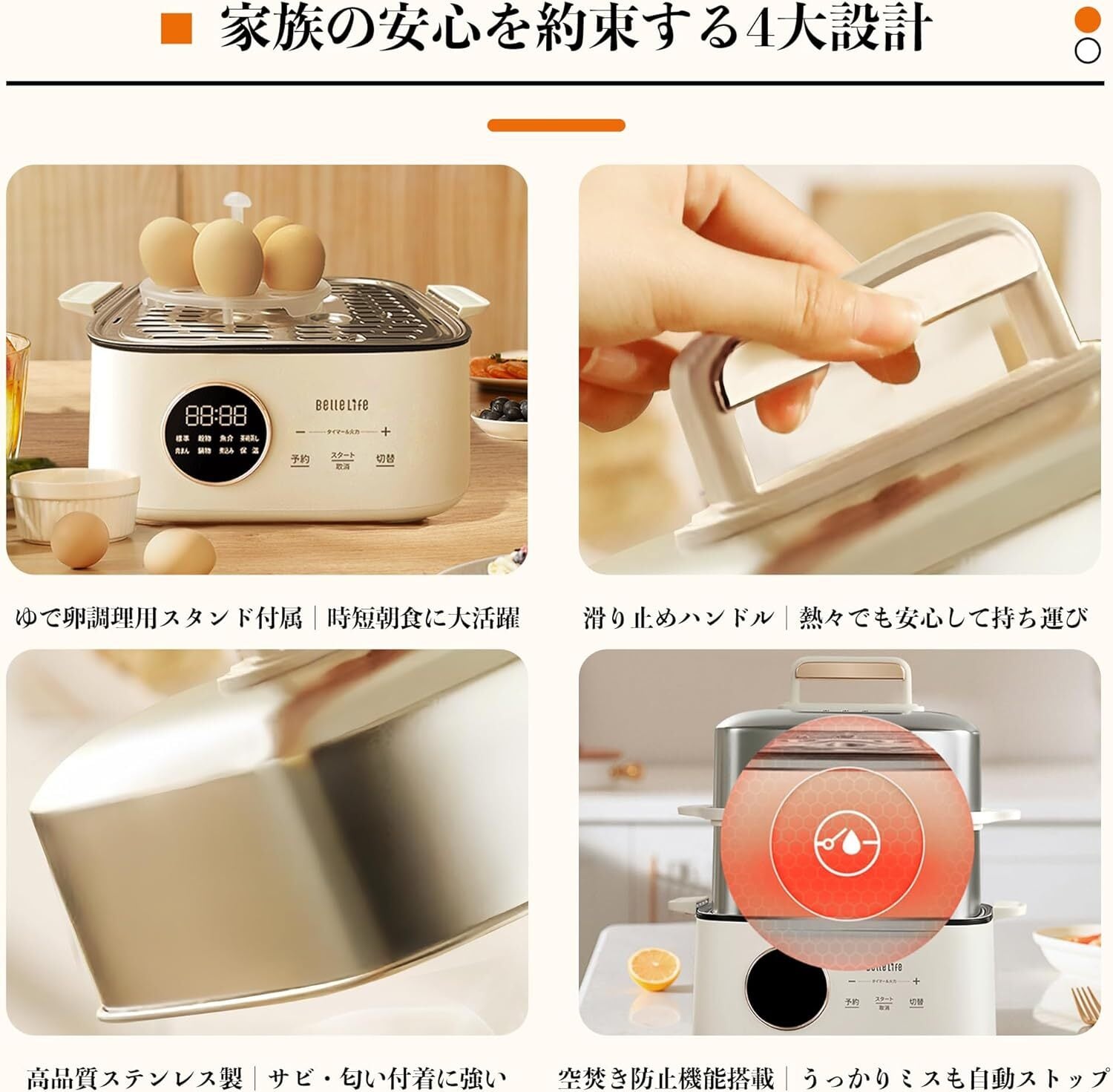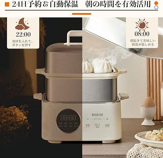 電気蒸し器 Bellelife ステームクッカー 蒸す・煮る・発酵 24H予約タイマー ゆで卵メーカー ヨーグルト発酵機 家庭用 9.5L 二層蒸し器 日本語取扱説明書 時短調理 健康調理 乾燥防止機能